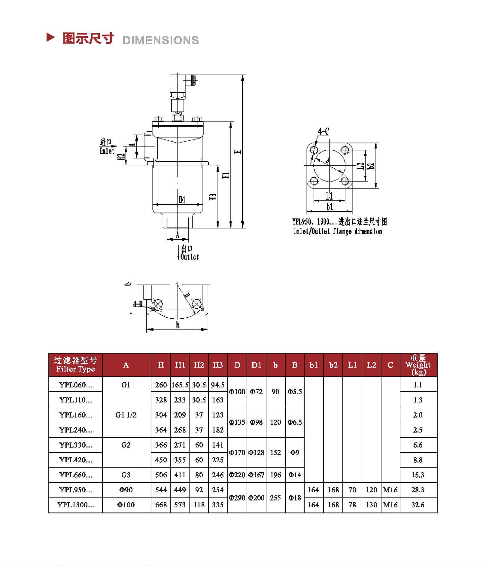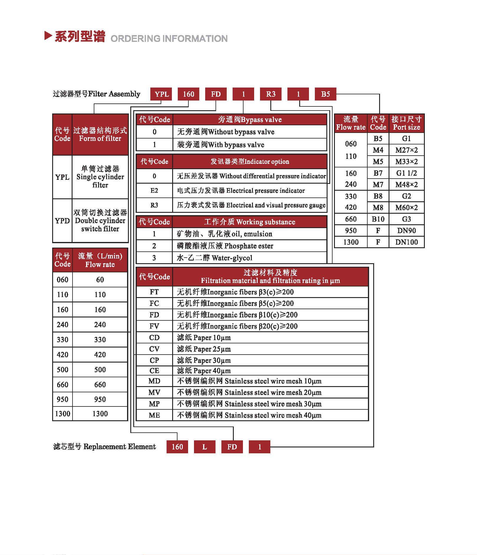 注:*為過濾精度,若使用介質(zhì)為水—乙二醇,公稱流量160L/min,過濾精度10μm,帶CYB—I型發(fā)訊器,則過濾型號為RF•BH-160×10Y,濾芯型號為HL00160R010BN/HC。
